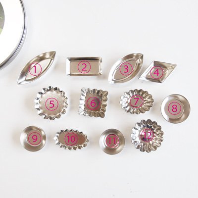 小さなタルト型、12種類の形が3個づつセットになっています。