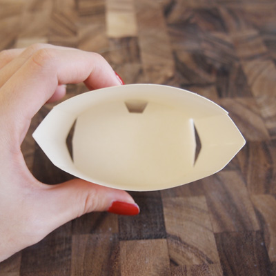 このポテトケースはケースの底にある突起の紙のお陰で自立する設計になってるのが特徴的です。