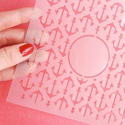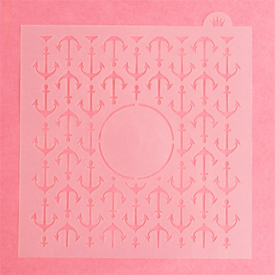 5.5インチ正方形のステンシルの碇(いかり)柄でセンタ-に円で抜かれています。