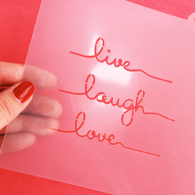 5.5インチ正方形のステンシルで、Live Laugh Loveのメッセージです。