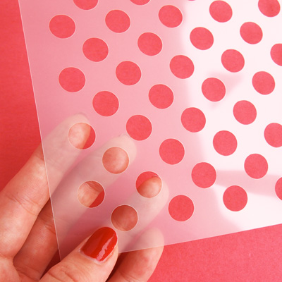 5.5インチ正方形のステンシルで、水玉ドットの総柄です。