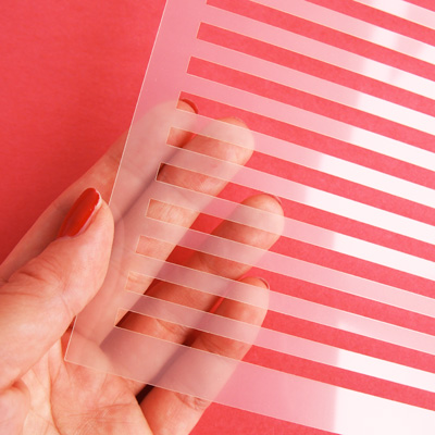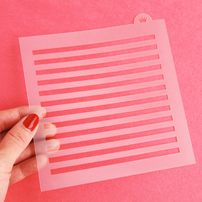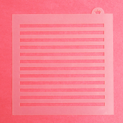 5.5インチ正方形のステンシルで、シンプルな横ストライプです。横、縦とステンシルの向きを変えてステンシルすれば、ギンガムチェックの様な柄にもなります♪