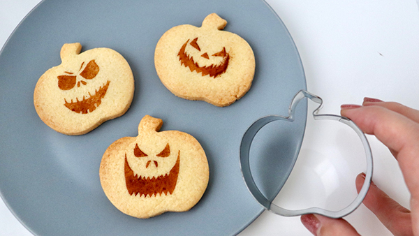 このステンシルに丁度よいクッキー型は、昔からのロングセラーFOXRUNのハロウィン4個セット、または7個セットの中のカボヴャがお薦めです。