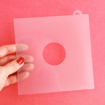 5.5インチ正方形のステンシルで、オレオサイズやマカロンのトップにステンシルするのにちょうど丸型。