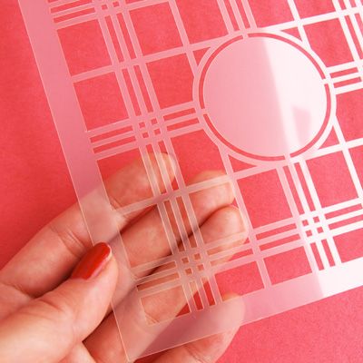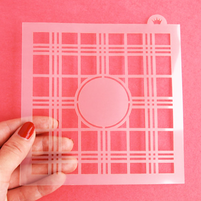 5.5インチ正方形のステンシルで、格子のチェック模様のモノグラムです。