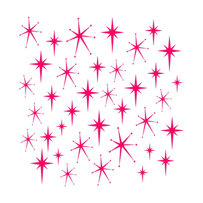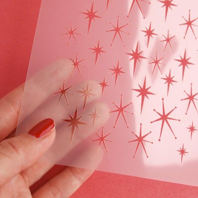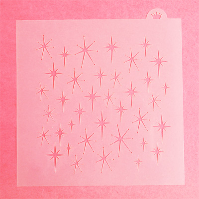 5.5インチ正方形のステンシルで、レトロなキラキラの星柄です。