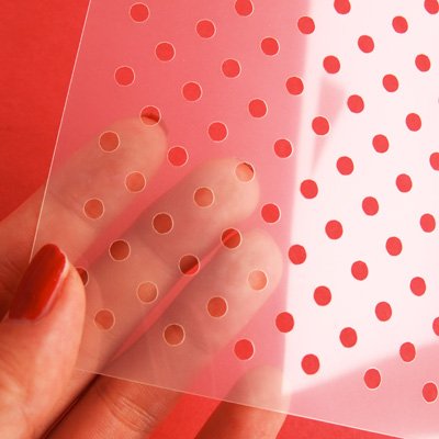 5.5インチ正方形のステンシルで、小さな水玉ドットです。水玉ドット2は1よりドット同士の隙間が狭いので小さいものにステンシルする場合か細かいドットがオススメです♪